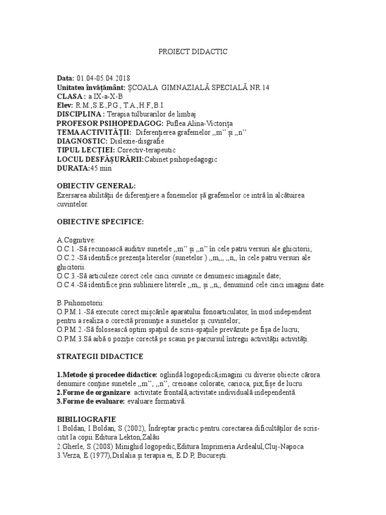 Proiect de lectie dislexie disgrafie. Activitatea profesorului crt etapele activităţii ob. Op tim p demersul didactic metode şi procedee mijloace de. O activitate demonstrativa la logopedie.