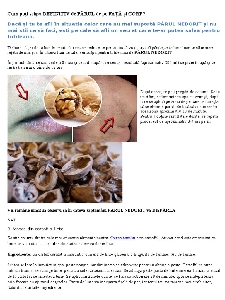 Scapa definitiv de parul nedorit septembrie 2020. Nu ţi rămâne decât să alegi. De aceea in continuare va vom prezenta cateva modalitati simple prin care puteti scapa de parul enervant de pe fata. Cu siguranță nu te ai gândit la întrebuințările ne.