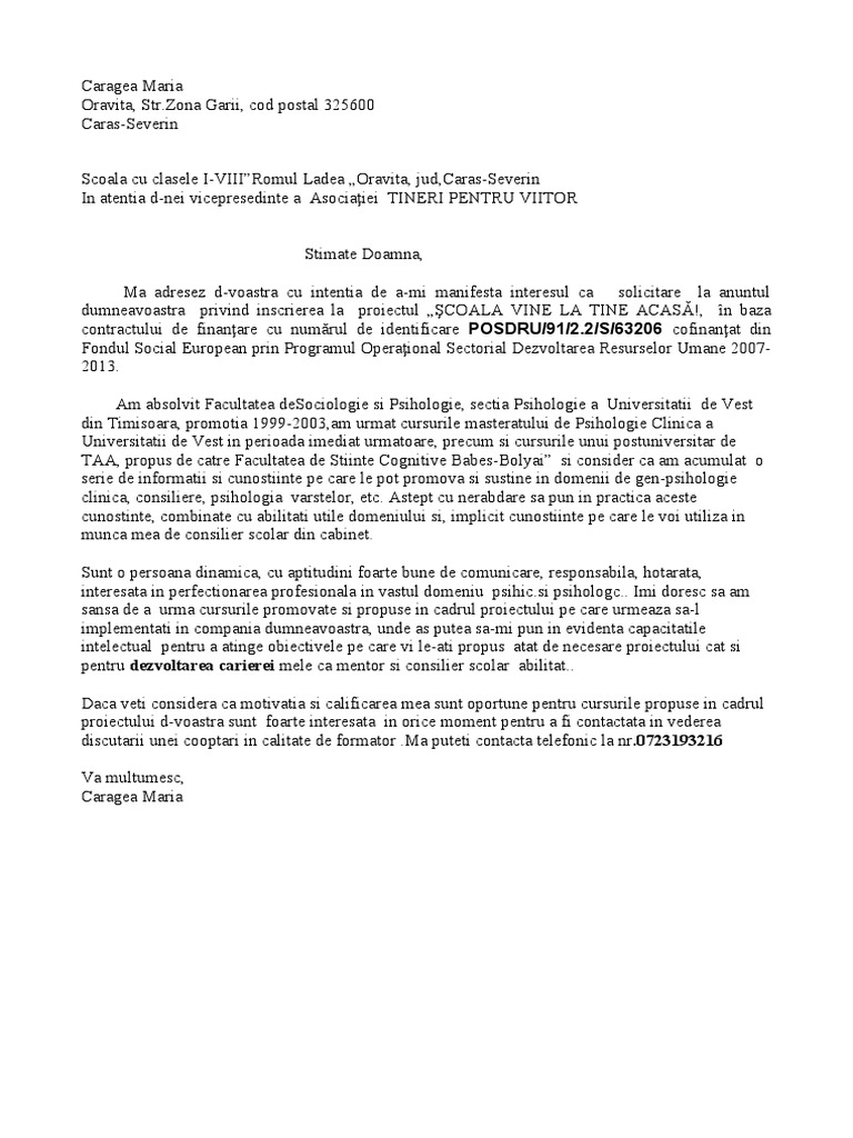 Scrisoare De Intentie Pentru Scoala