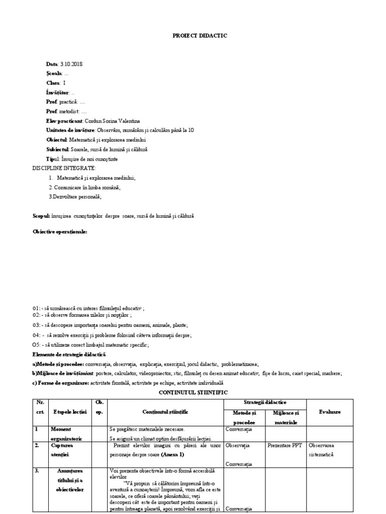 Este un proiect didactic de însuşire de noi cunoştinte la clasa i. Copilaşilor le a plăcut şi astfel au înţeles mai bine cât de important este soarele pentru plante şi nu numai. Proiect didactic secventa. Are o varsta de aproximativ 4 6 miliarde de ani si se afla la mijlocul vietii.