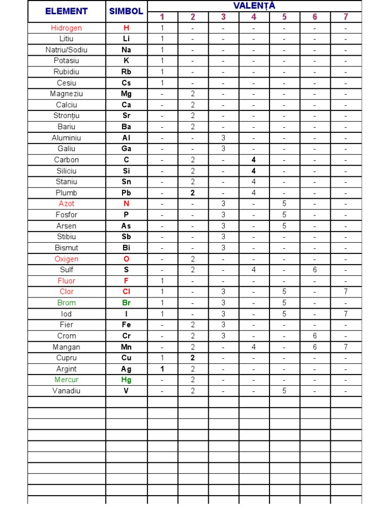 Tabelul Periodic Al Elementelor Cu Valente Pdf
