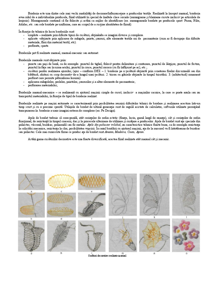 Tehnici de brodat manual. 0 stele 0 review uri. Ata de brodat este disponibila in conuri de diverse marimi de obicei 1000 m 2000 m sau 5000 m si in cateva grosimi ale firului diferite 60 40 30 12 numarul scade pe masura ce creste grosimea firului functie de categoria de ata si de firma care o produce. Tehnici de cusut si brodat. Manual pentru cusut si brodat de mana o instructiune separata a fost scrisa adele della porta in 1915.