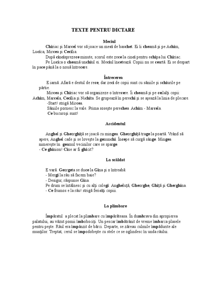Texte de dictari pentru clasa 1. Texte pentru dictare meciul chiriac şi marcel vor să joace un meci de baschet. Bravo eu in a 8 a. Sunt cateva texte scurte pt.